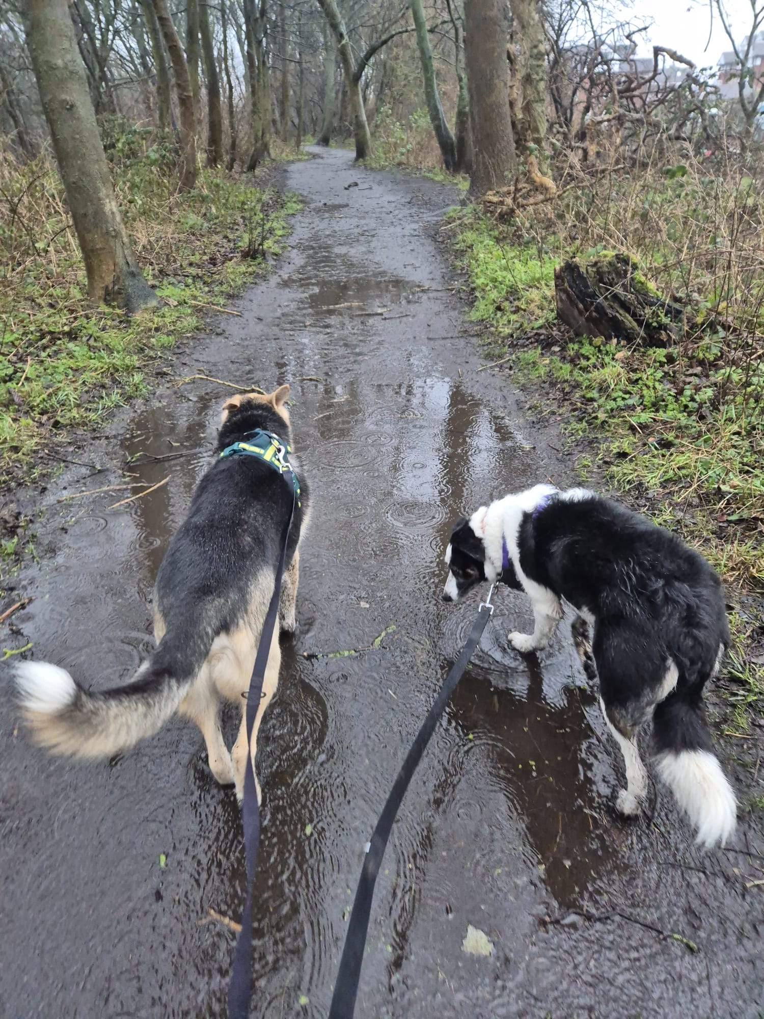 Walking dogs in the rain